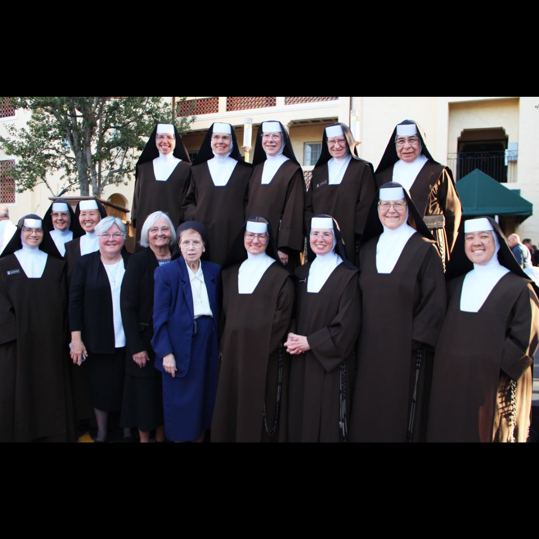 Two religious communities that have been instrumental throughout the evolution of St. Theresa Catholic School in Coral Gables—the Sisters of St. Joseph of St. Augustine and the Carmelite Sisters of the Most Sacred Heart of Los Angeles—are pictured in this group photo taken after the school’s 100th anniversary Mass Nov. 16, 2025, in Coral Gables.