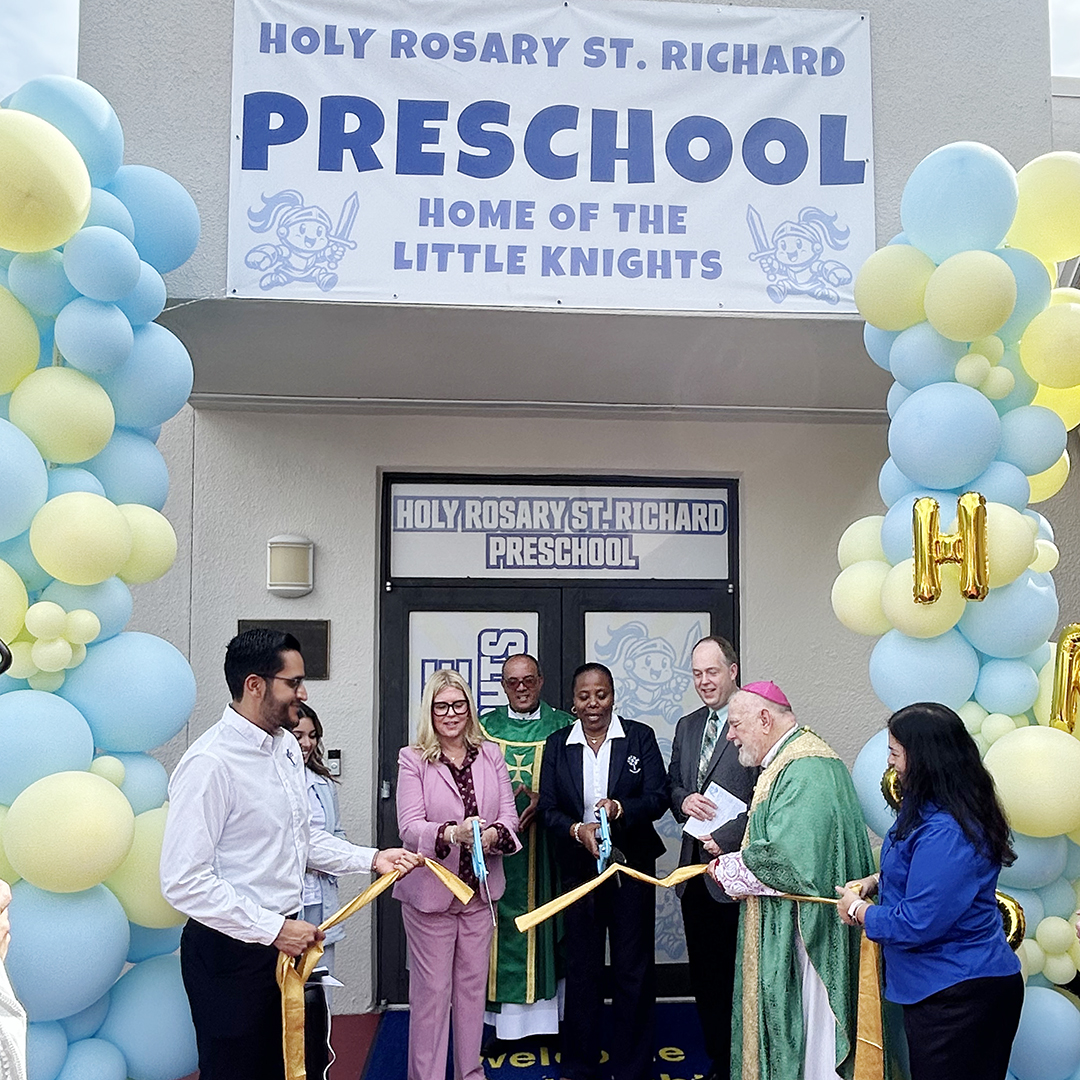 Continuing its academic growth trajectory with 65 schools and counting, the Archdiocese of Miami celebrated the Holy Rosary St. Richard Preschool opening and arrival of Catholic education in Palmetto Bay with a Mass and ribbon-cutting Oct. 5, 2025. The new north campus preschool, located at Our Lady of the Holy Rosary–St. Richard Church in Palmetto Bay, now has 17 children enrolled and serves children from three months to pre-K4, with automatic admission to Our Lady of the Holy Rosary-St. Richard School in Cutler Bay, which serves pre-K2 through eighth grade.