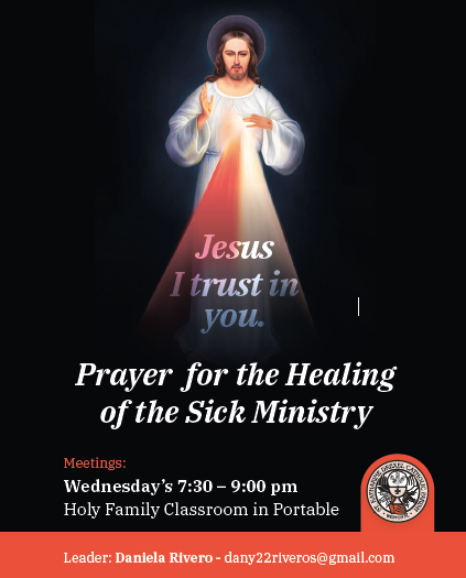 Prayer for the healing of the sick ministry Next date: Oct 22, 2025 - click here for time schedule - English Share this event Location St. Katharine Drexel Catholic Parish 2501 South Post Road Weston, FL 33327 (Map) More InformationPrayer for the healing of the sick ministry[email protected]